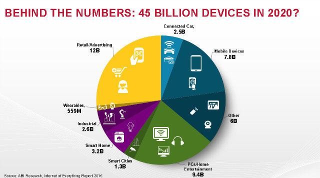 ABI Research、Mobility Report以及Gartner等机构都对至2020年可能达到的物联网设备进行了预测,分别达到了450亿、500亿以及250亿。确实,看到这些数据也是醉了:这可是以亿为计量单位的,中间有两者就相差50%。