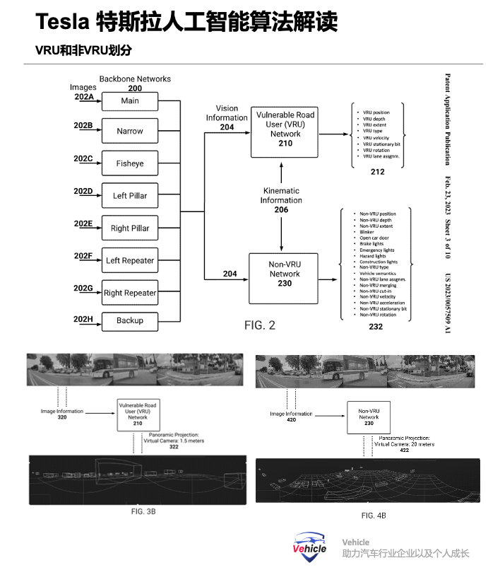 这些触发信号可能包括错误的预测、用户干预或未能正确进行路径规划。这样一个闭环系统,确保不符合预期的数据得到回传,供算法迭代。那么海量的数据如何处理也是一个大问题,特斯拉不少专利分享过,下次有机会解读分享下。感知秘诀 – 基于VRU和非VRU的BEV和Occ其实,我们开车的时候最怕的是安全事故,根据特斯拉专利US20230057509A1介绍,特斯拉感知算法对于道路上可能的交通参与者,按照可能伤害进行分区,分为两部分:弱势道路使用者(VRU),VRU 定义为行人、骑自行车的人、婴儿车、滑板者、动物,基本上是任何可能受伤的人。