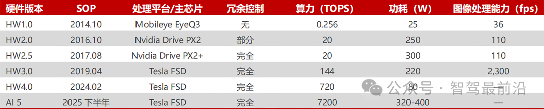 特斯拉自动驾驶硬件平台不同版本对比