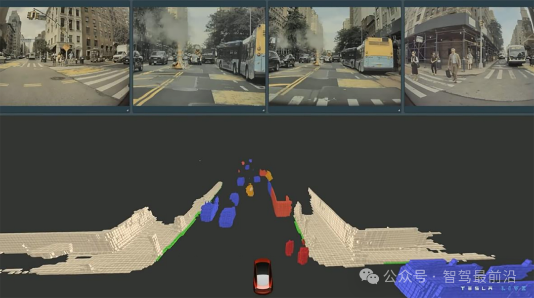 感知层:特斯拉采用了BEV(Bird Eye’s View,鸟瞰图)+ Transformer架构来提升车辆对周围环境的感知能力。通过对多摄像头数据进行融合,FSD系统能够将2D的图像信息转化为对3D环境的精确感知。同时,Occupancy Network(占用网络)进一步增强了对复杂场景下物体运动状态的识别能力,特别是在遮挡物体和动态场景中表现尤为突出。