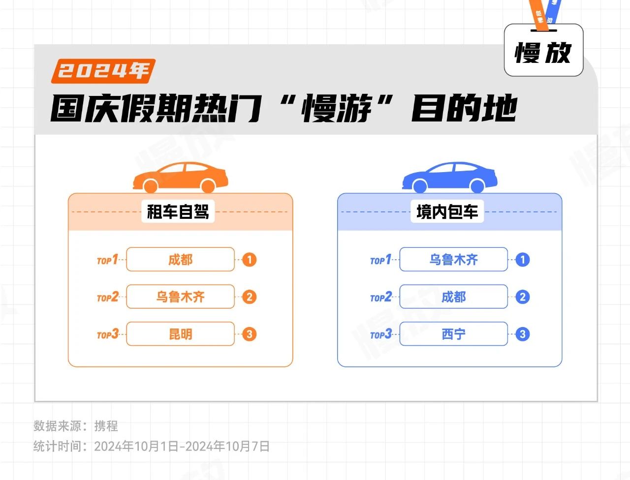 对于这群年轻人来说,和亲朋好友租一辆车,或是自驾一路北上,沿途欣赏自然风景的变化,品尝每个城市的特色美食;或是乘飞机到达目的地,租车深度畅游当地,自由安排行程。携程数据显示,成都、乌鲁木齐、昆明等地成为了他们租车自驾的主要目的地。