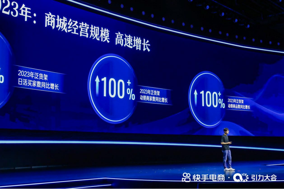 数据显示,2023年,快手泛货架日活买家数同比增长75%,日均动销商家数同比增长超100%。可以说,快手电商的货架场起步即进入高速增长。