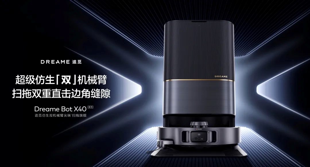 “仿生机械臂”,顾名思义,会在遇到墙边、桌腿等边角地带时,拖布会外扩,像人手的工作方式一样深度清洁。今年2月,追觅科技还发布了搭载仿生机械臂技术3.0的仿生“双”机械臂的尖端扫拖旗舰X40系列,已实现边刷、抹布双臂联动,清洁更彻底。