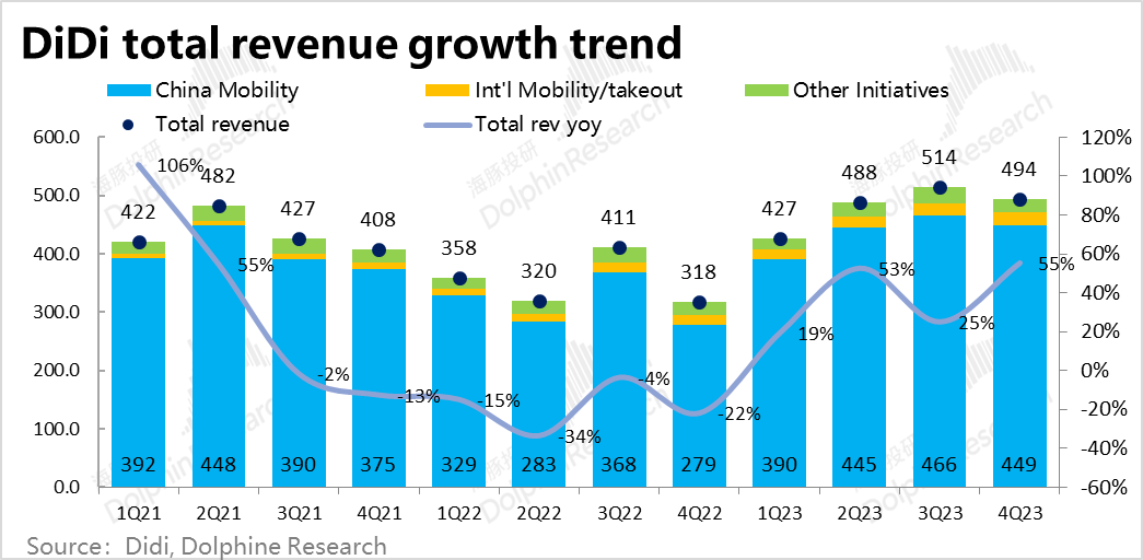 但无论如何,新业务+国际业务本季合计亏损明显扩大到约26亿,接近盈利业务–国内出行盈利的两倍。这显然也不算个好信号。海豚投研观点:总的来看,滴滴本次四季度业绩虽然大体上是延续了上季度的趋势,但上述几个负面信号使得我们对滴滴后续的展望还是偏负面的。