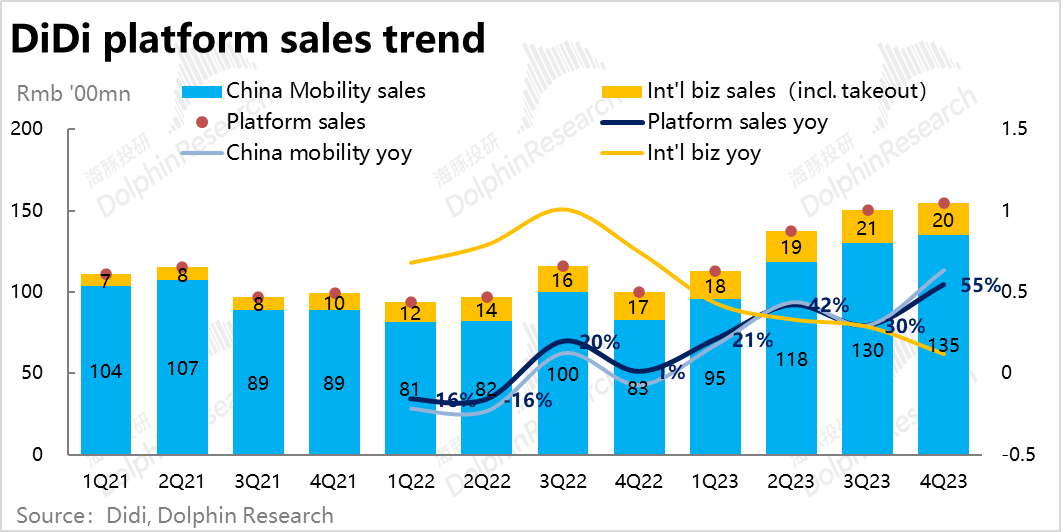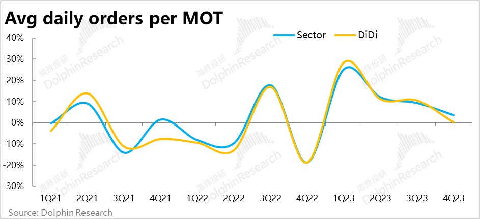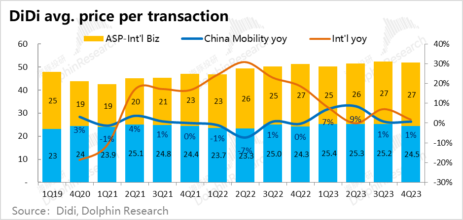 而滴滴国内客单价则是环比下降了约2.8%,在单量增长的情况下,拖累GTV略微下滑。但同比来看,价格波动符合季节性变化,也无可厚非的地方。