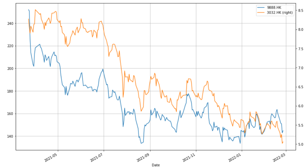 自百度赴港上市之后,由于互联网行业受到较大监管压力,整个行业市场表现都在低谷期,百度亦不例外,2021全年,其股价表现要跑输于大盘,呈现出“超跌”特性,但我们尤其注意到进入2022年后,百度似乎有转机的迹象,虽然同行业一样股价仍然较为跌宕,但个股有了跑赢大盘的迹象。