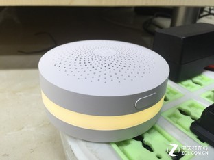 作为小米智能家庭套装的核心,小米多功能网关体积也和它的地位一样更重一些。其中内置了变色灯带和扬声器,通过这样的设计使得其多功能网关不仅仅是单纯的控制中心,还能用来做夜灯、听收音机以及当做闹钟使用。
