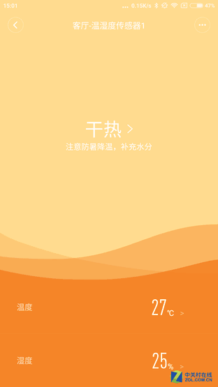 小米温湿度传感器可以查看室内状况包括温度以及空气湿度,超过设定值时可以通知到手机,不过要说这枚小小的传感器最大的作用还是可以智能联动家电,例当传感器检测到我们室内空气过于干燥时,可通过联动小米智能插座打开与其相连的加湿器,改善空气湿度。再比如检测到室内温度不正常时,能够自动打开空调,调节室温。