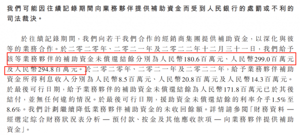 ▲近3年汽车街向经销商提供补助资金的未偿还结余情况,来源:招股说明书