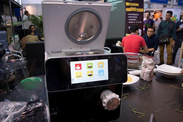 据现场工作人员介绍,这款帮厨机器人可以烹饪面条、米粉、馒头和米饭四种主食,让你的一日三餐不再单调,同时也解决了南北通婚家庭众口难调的大难题。