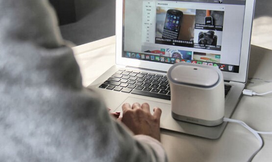 一见Kisslink吻路由,也许你就会被这小家伙的身材给深深的吸引住,它不像小米路由那样的大滚筒,吻路由的外观看起来显的内敛许多。路由采用“圆形”为自己的设计语言,同时在路由上部采用向前弯曲设计,从侧面看大线条曲线设计看起来非常美观,同时拿在手上也很舒服,不管是萝莉控大叔,还是文青小妹妹都会对这款产品爱不释手,因为它真的很像科幻电影中的未来小宠物一样,并且弯腰的设计就好像在求你摸摸它一样,简直是萌萌哒。