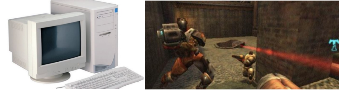 图片:20世纪90年代个人电脑、早期3D电脑游戏《雷神之锤》画面