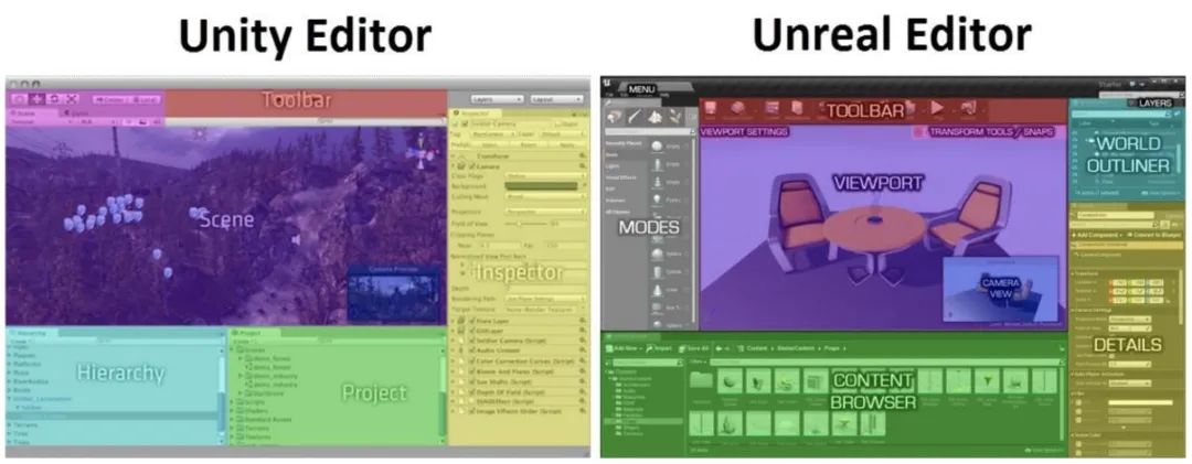 Unity引擎的优势在于对开发人员来说更加友好(简单明了)的交互界面、适用开发语言,以及提供更多的开发平台。但同时也会带来劣势,与Unreal相比,Unity在高质动画渲染上一直落后Unreal。尽管近几年Unity不断将高额资金用于技术研发、收购等来补短板,但目前还没有一部真正的3A大作诞生在Unity平台上。
