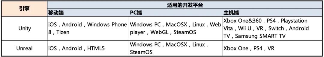 截至目前,Unity可以支持开发的平台多达20多种,而Unreal则只覆盖了主流的PC、移动、主机平台。