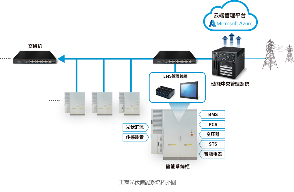 研华具备强大的软硬整合能力,基于研华标准物联网Jelina平台进一步延伸定制了适用于新能源行业的能源Jelina方案,该方案能帮助客户高效部署,实时云端管理设备状态,涵盖了灾难恢复、远程监控、无人值守等功能,帮助解决行业痛点,确保储能系统长期稳定运行。此外,作为微软合作伙伴,研华提供灵活安全的Azure云服务,帮助储能边缘端设备数据无缝上云,实现安全、敏捷、高可用、低时延、隐私保护的大数据和人工智能服务与应用。