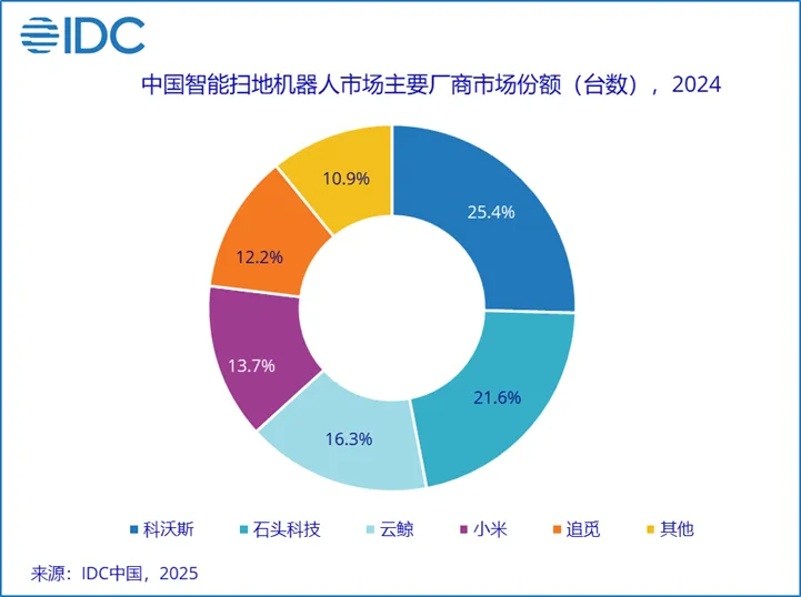 通过技术创新层面来看,打造出更具竞争力的产品,长期稳居国内扫地机器人榜首位置。根据IDC的数据显示,科沃斯在国内的市场份额为25.4%,继续蝉联市场第一。