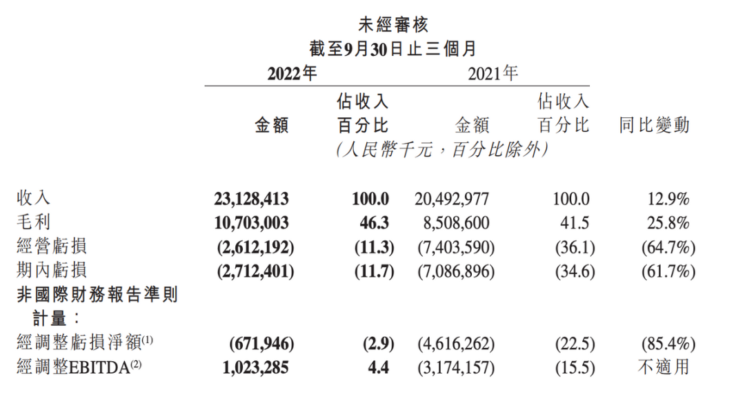 日前,快手发布了2022年三季度财报,财报显示,三季度快手营收231.3亿元,同比增长12.9%;净亏损27.1亿元,同比收窄61.7%;调整后净亏损为6.719亿元。