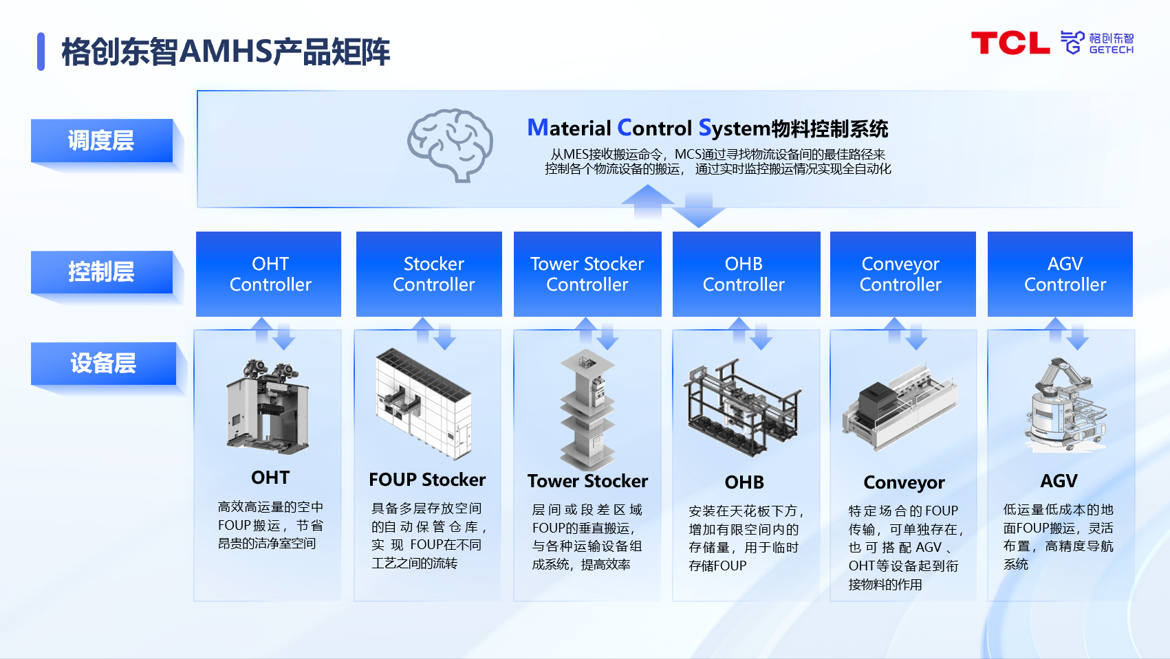 AMHS系统的特点与应用价值主要体现在:高可靠性、高自动化与信息化、高效率、高度灵活性与可扩展性。格创东智认为,随着半导体技术的持续演进,晶圆的尺寸不断增大,使得半导体工厂对于自动化和信息化技术要求越来越高。因此从中长期来看,新建的半导体工厂会将AMHS作为“必选项”,对AMHS的需求主要体现在高度自动化、智能化、信息化,具备高可靠性和高安全性,同时具备一定的灵活性和可扩展性,以减少对人的依赖,提高整个生产机台的使用率和库存周转率。