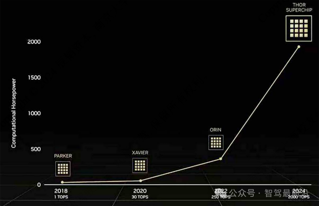 英伟达最新的 Thor 芯片可达接近 2000 TOPS 算力