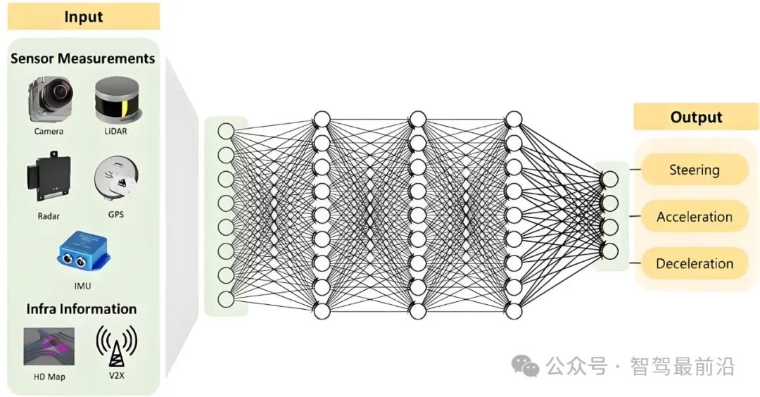 在实现层面,端到端技术通常采用深度神经网络作为核心算法。这些网络包括卷积神经网络(CNN)和Transformer等架构,它们被用来处理自动驾驶所需的如摄像头捕捉的图像、激光雷达的点云数据以及车辆的动态信息多模态输入等数据。通过整合这些数据,深度神经网络能够在复杂场景中做出高精度的决策。如在一个拥挤的城市道路上,系统不仅需要识别静态障碍物如车道线和交通信号灯,还需要实时预测动态目标如行人和车辆的运动轨迹。端到端模型通过直接处理这些多模态数据,能够快速生成驾驶决策,从而提升了系统的响应速度和实时性。