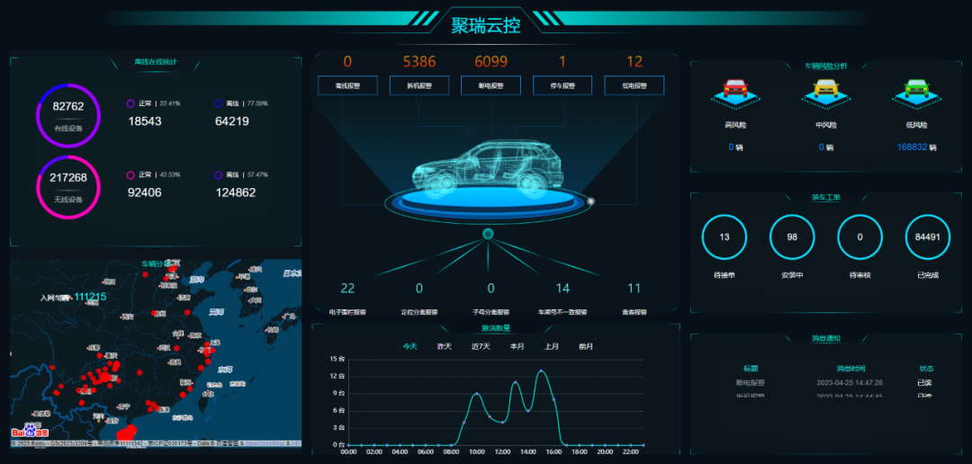 在汽车金融领域,聚瑞云控还带来了一站式资产管理解决方案—智能BI可视化大数据平台。可支持多地图轨迹回放和实景显示、风控危险区高亮标注等车辆检测功能,帮助车辆金融公司从多维度获取车辆的实时状况。同时,平台内还具备常停点分析、量化风险指标等AI大数据分析功能,以提升企业的贷款风险管控能力。