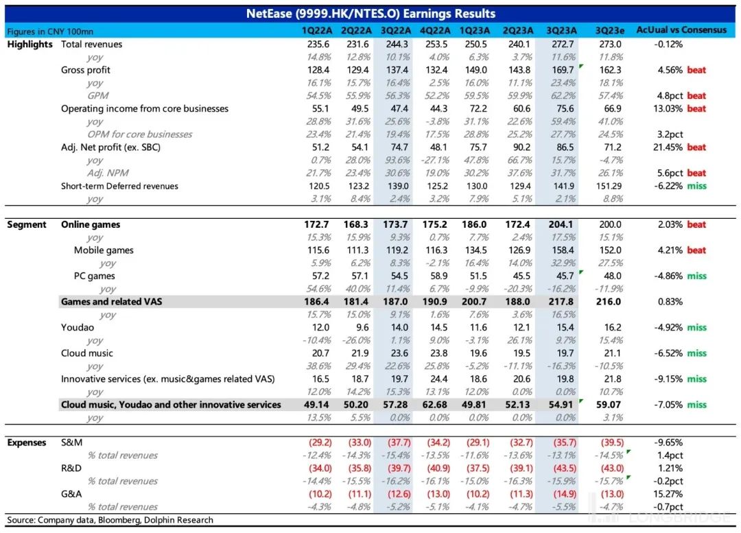 北京时间 11 月 16 日港股盘后,网易发布了 2023年三季度财报。