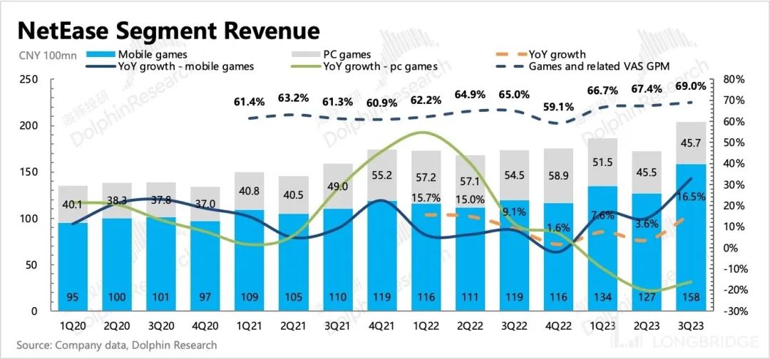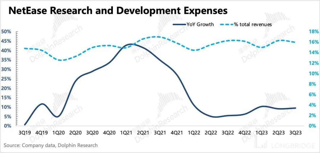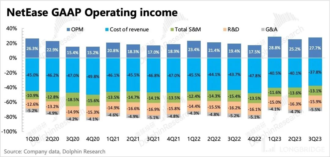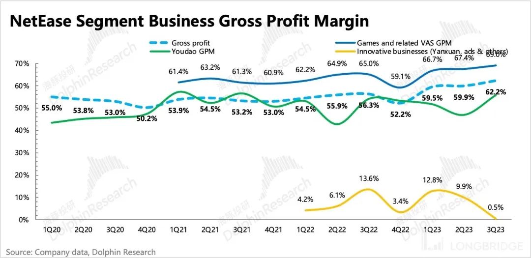 但网易通过在宣发上引导更多的用户从官网/TapTap 下载并引入自己的社群进行管理,来减少这一块的分成,进而提升自己的毛利率。比如新游戏《全明星街球派对》就没有像往常一样在安卓端的手机应用商店上架,驱动游戏毛利率环比进一步提高。除此之外,云音乐、有道的毛利率也都继续改善,这和他们自身的业务调整有关。