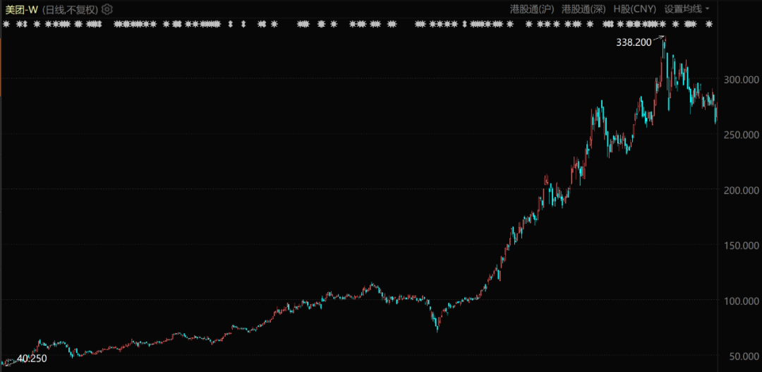 但是到了2021年,美团又突然受到了上市以来的最大经营亏损,之后2022年亏损继续,股价也逐渐从400元以上持续跌至今年的61元左右。直到2023年再次盈利之后,其股价才有所回升。