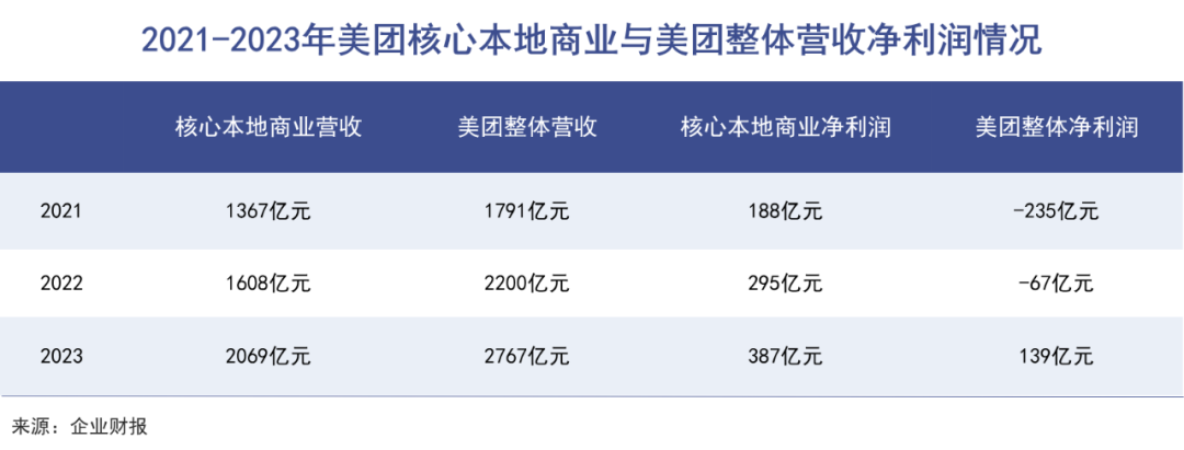 2023年,美团核心本地商业分部(包括餐饮外卖、到店酒旅、美团闪购、民宿以及交通票务)的收入为 2069 亿元,同比增长28.7%;经营利润为387亿元,同比增长31.2%。