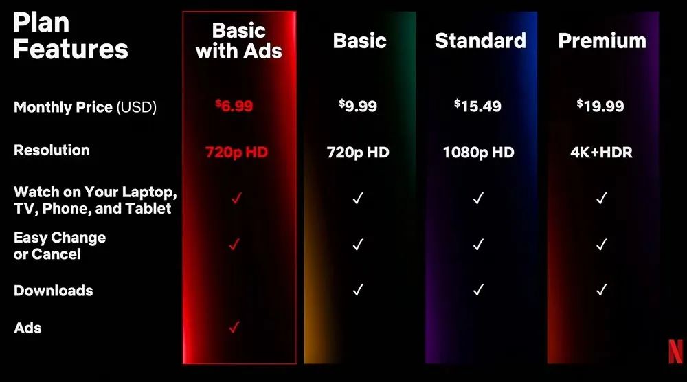 分层运营能力成了建设会员体系的一个考验。2022年流媒体Netflix营收下滑,促使Netflix推出包含广告的订阅计划,每月仅6.99美元,比基础订阅计划还要便宜3美元。通过吸引愿意接受部分广告来换取低价的价格敏感型用户,Netflix快速提升了订阅用户数和营收,截至2024年底,这部分用户月活已经达到7000万。
