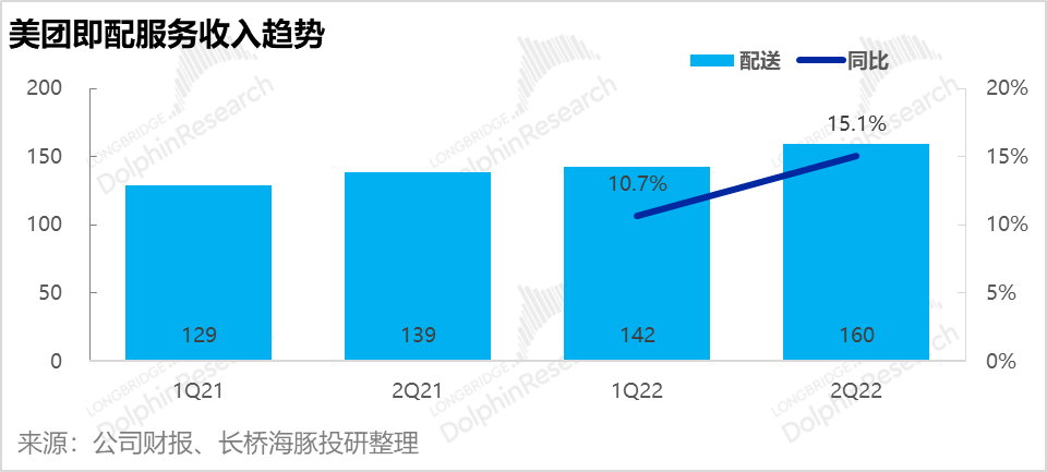 二季度即配服务收入有160亿元,竟然还加速增长到了15%,这个季度收入超预期的应该主要来自于物流收入。而且,考虑到即配单量同比应该是放缓的,所以配送单价在疫情之下应该是飙涨了不少。