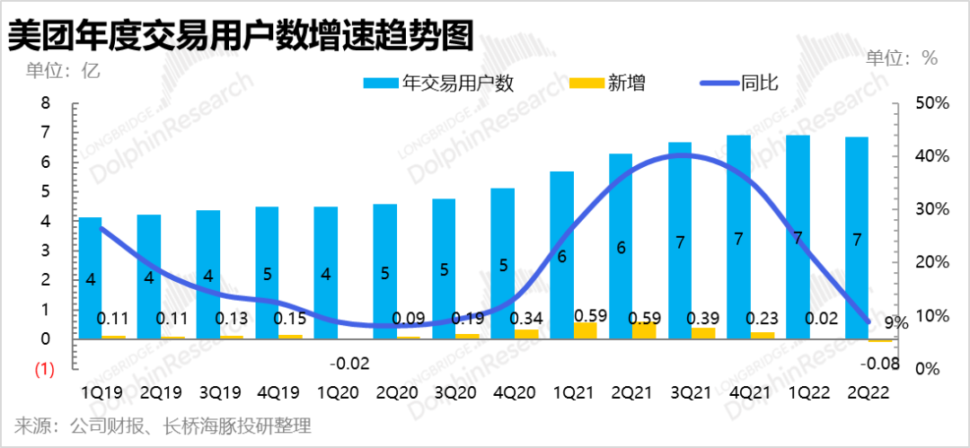 按照公司上季度所说的闪购交易量同比增长70%,假设二季度疫情之下还是大致的增长的话,大概对应着餐饮外卖订单同比增长4-5%左右,大约41+亿单,外卖最终实现的是正增长,而非公司之前所说的乐观情况下维持一季度单量、能够齐平就不错了。海豚君估计,稍微超预期背后是上海是六月解封后外卖恢复速度比较高,因为解封大概有一个月的时间只能外卖不能堂食。