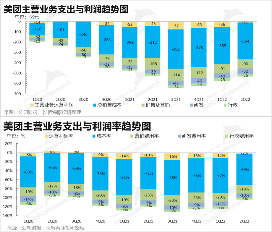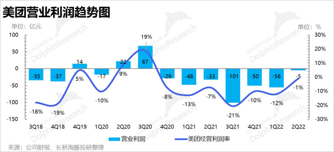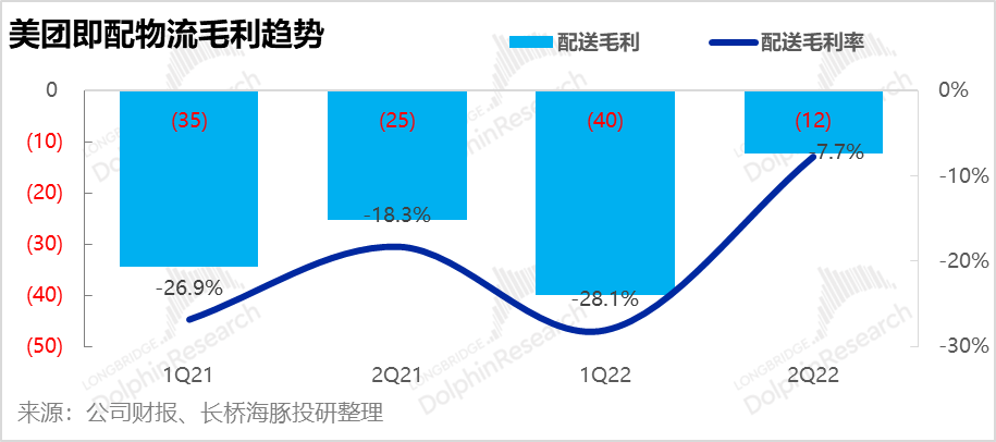 美团的即配物流在疫情加持,物流配送紧缺,美团收缩消费激励的情况下,物流配送的毛亏直接缩减到了12亿,而从有数据的四个季度来看,之前最少的亏损都是25亿。这也在一定程度上解释了,为什么这个季度公司的利润为何如此超出市场预期?大概率是前端用户补贴少了,后端配送补贴少了,省出来的自然都是毛利了。