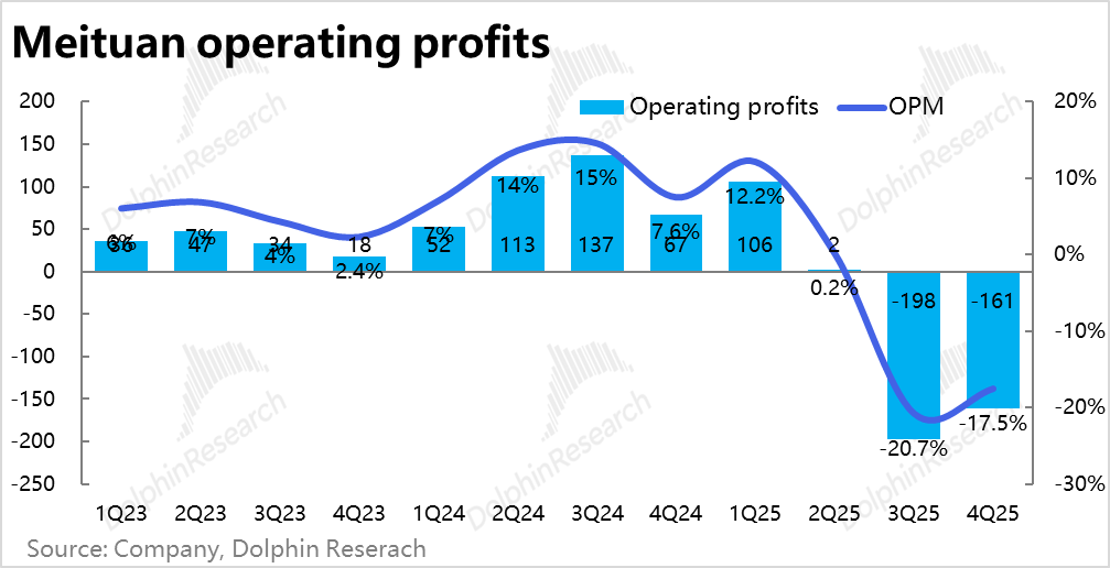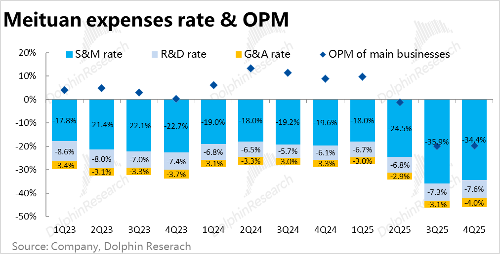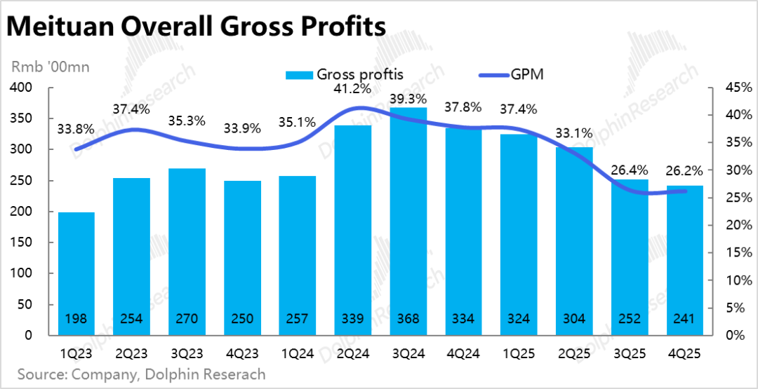 本季毛利率仅为26.2%,在外卖(配送)补贴影响收窄的情况下,依然环比下滑了约0.2pct,当然也有冬季的季节性影响。导致毛利润同比下降近28%,跌幅还是比较高,明显不及市场预期。
