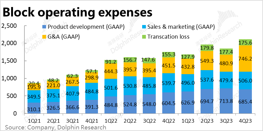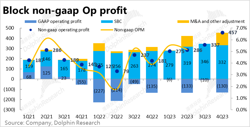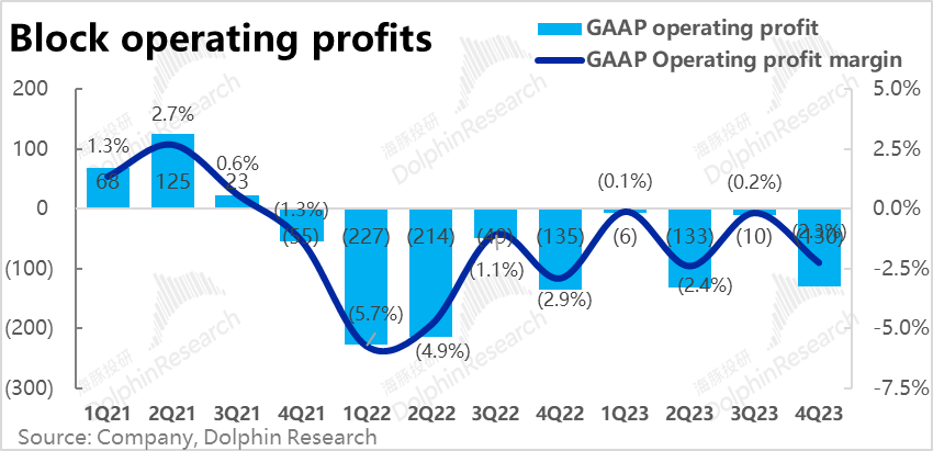最终在GAAP口径下,Block本季的经营亏损为1.3亿美元,和去年同期相比仅缩窄了0.05亿,并没多少改善。