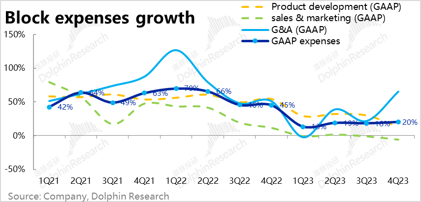 由于公司总营收受比特币业务影响波动较大,因此费用占收入比重参考意义不大,我们主要观察费用同比增长情况。