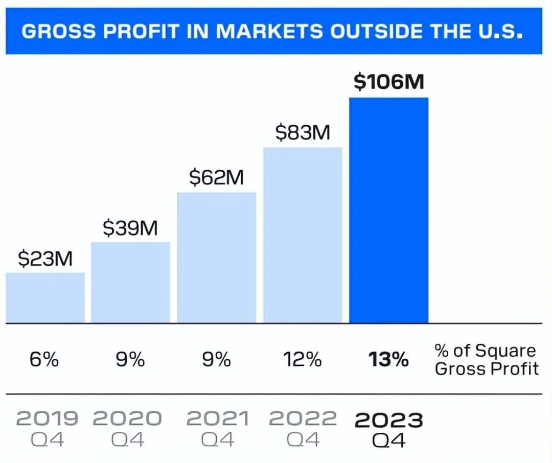 而另一大战略方向 –拓展海外业务的进展上,本季度Square板块下,海外贡献的毛利润达到1.06亿,占Square整体毛利的13%,相比去年同期提高了1pct,虽没有明显提升,但还属稳步推进中。