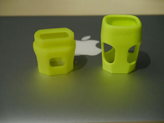 另一个外观区别较大的部分在于硅胶套。从颜色上看,usense的硅胶套要比酷浪小羽绚丽,看起来更富有朝气一些,但高度和厚度均比酷浪小羽高出很多,重量比酷浪小羽重了2.4g。