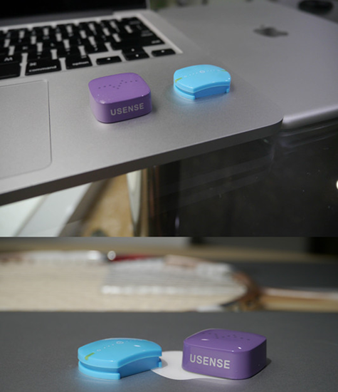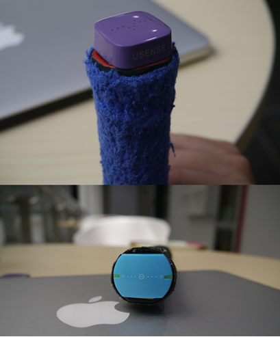 酷浪小羽的开机可以通过短按位于机身中央的电源键完成,也可通过连续晃动设备来实现,而usense并没有电源键,开机只能靠晃动设备来完成。
