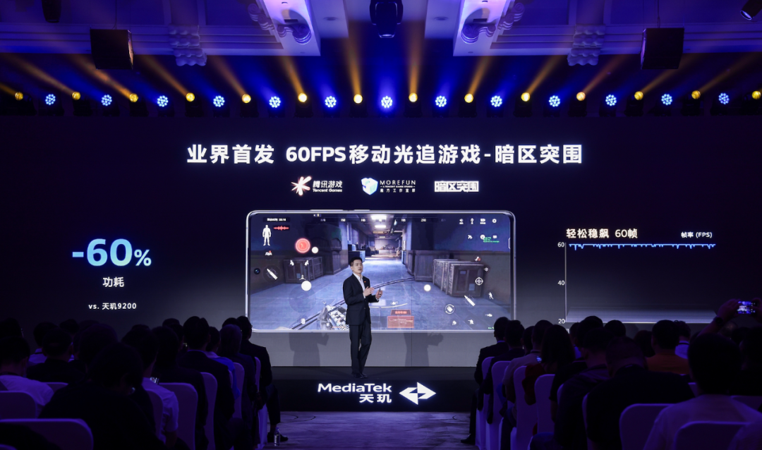值得一提的是,天玑9300是行业内第一款能够支持60帧光追手游的旗舰芯片。光线追踪是一种先进的图形渲染技术,它可以模拟光线在物体表面的反射、折射、散射等现象,从而产生更真实的阴影、反射、透明度等效果。目前,光线追踪技术主要应用在PC和主机平台上,对于芯片的性能和功耗要求很高,如今联发科走在行业技术前沿,打破技术壁垒,将光线追踪带到了移动设备。
