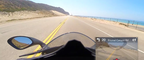 Skully AR-1 搭载了一个 180° 广角后置摄像头,你可以通过 HUD 看到身后的路况。这无疑大大提高了骑行安全。其研发团队表示,180° 广角足以让身后的景象一览无余,消除盲点。