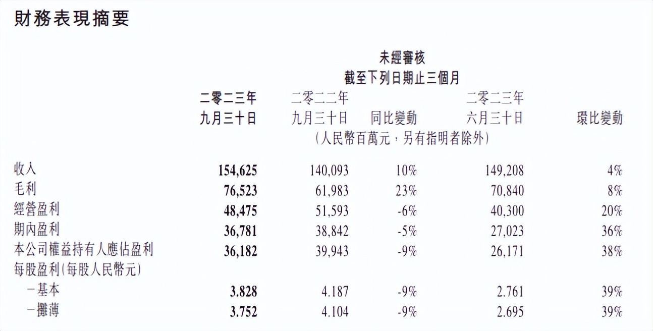 近日,腾讯披露了2023年第三季度财报,营收1546.25亿元,同比增长10%;非国际通用会计准则下的净利润为449.21亿元,同比增长39%。此前两个季度,腾讯的营收、净利润增速同样均为双位数。