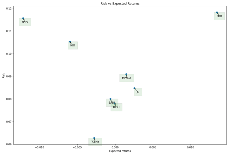 我们整理了代表中概股企业2022年至今代表中概企业每日股价波动情况(标准差),与每日平均回报率,与同类相比,美团属于风险和回报率都适中的位置。