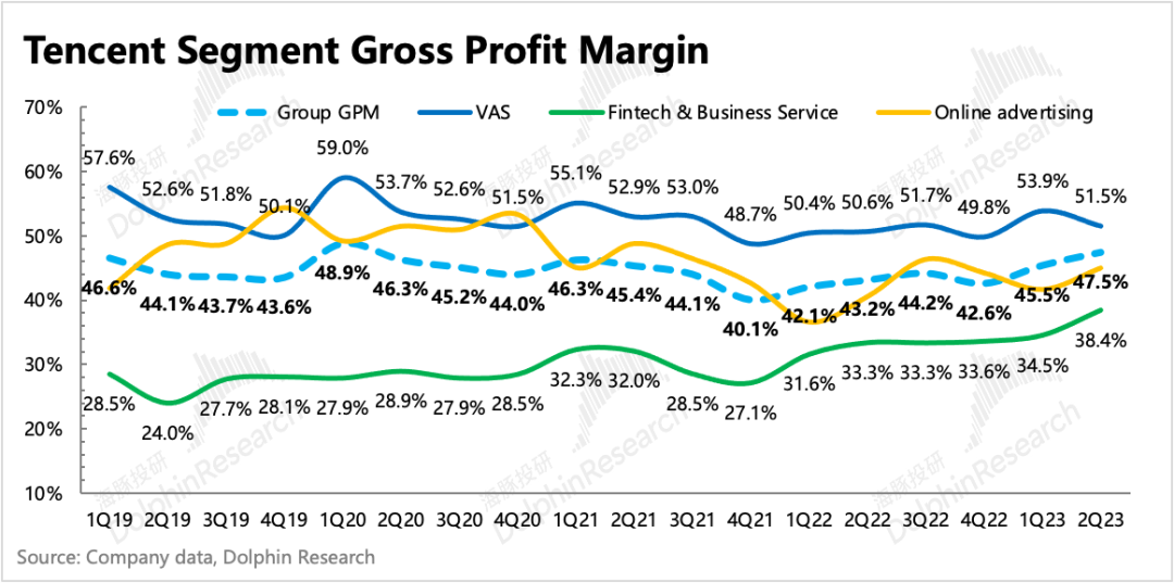 企业服务同比增长低两位数,其中云业务已经走出磨底期,同比微增,企服里面另外的增量就主要来自于视频号的电商佣金收入。