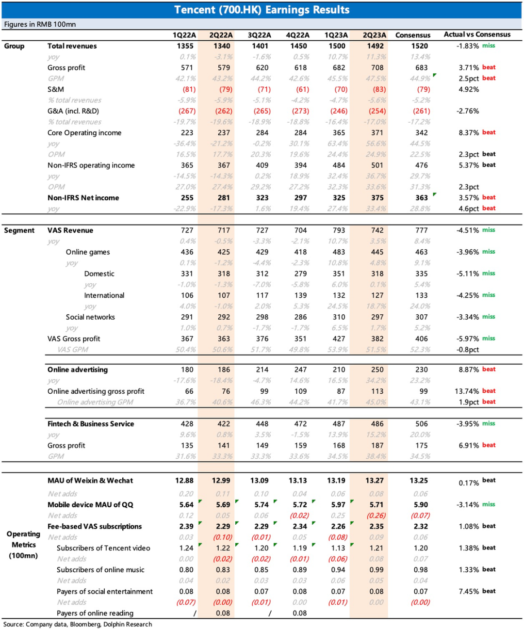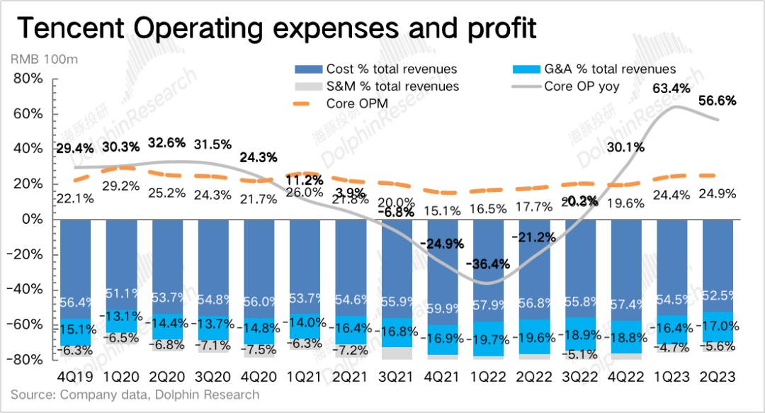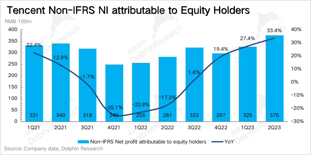 最终二季度实现Non-IFRS归母净利润375亿,同比继续加速增长33%,超出市场预期。而海豚君同时也比较关注主营业务的经营利润情况,二季度同比增长57%,环比放缓,但去年同期基数并没有更低,因此整体仍然在修复趋势上。
