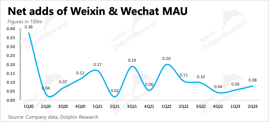 二季度微信用户净增800万,保持稳定扩张,季末达到13.27亿。但QQ用户在一季度冲高之后,自然性回落,月活减少2600万。QQ因为用户年龄圈层的原因,见顶走弱是大趋势,季节间的波动可能只是当期有新的功能或内容上线。微信流量稳定能够支撑微信生态商业化不断加深。