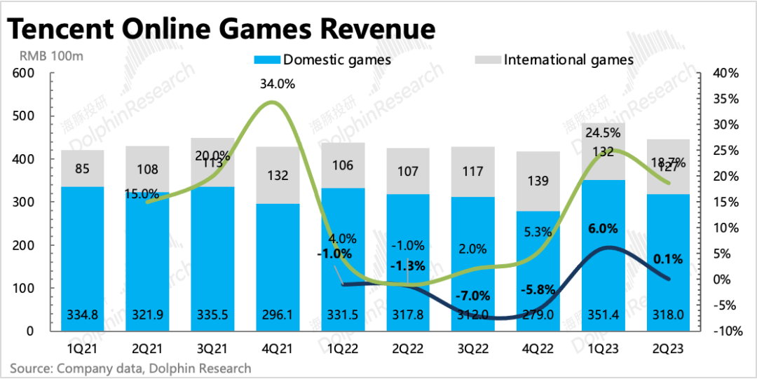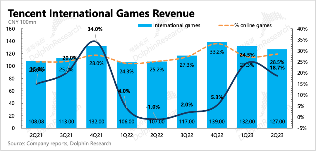 (2)游戏“拉胯”,但无需线性推演:游戏拉胯,应该是市场对这次财报最大的失望之处。游戏对腾讯的业绩贡献重要度自不必多说,而在行业已经明显回暖的情况下,腾讯反而掉队了。不过我们建议辩证的来看,当期收入与是否有新品,以及流水的确认时点相关,也容易造成季节间的波动。尤其是年初在明显冲了一波王者荣耀的流水之后,Q2腾讯新款不多,同行反而发了一些重磅,因此本土游戏短期顺势转淡。海豚君原本的预期也并不高,并且在之前的大股东抛售点评《腾讯:大股东抛抛抛,股王还能有信仰吗?》中明确提及,需要调低腾讯Q2以及今年的游戏预期。而从递延和新品管线来看,我们认为也不用对短期的扰动太过悲观。并且国际市场上,已经慢慢走出疫情后线上回流线下的影响。