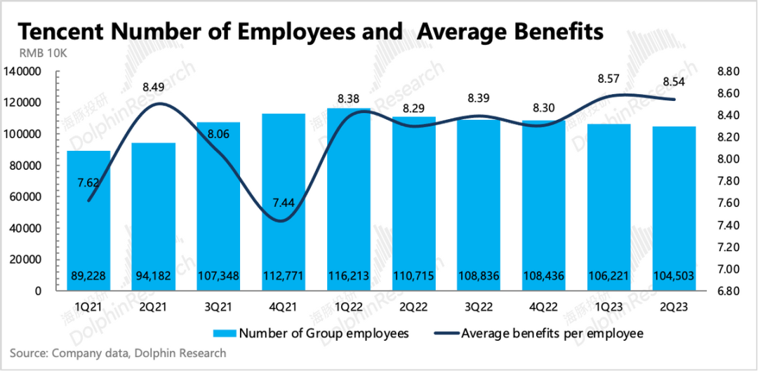 此外,利润率的提高还有控费的作用——主要源于裁员,雇员福利支出同比下滑3%,二季度单季员工净减少1700人。