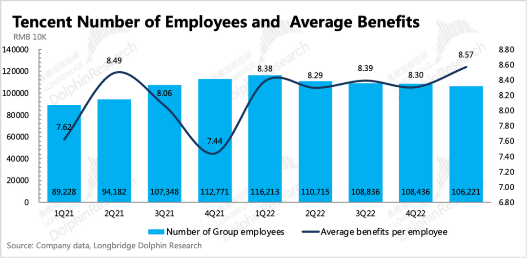 如果剔除税费的影响,单独看税前盈利以及核心主业的经营利润情况,则是妥妥超预期。实际上海豚君也一贯比较关注更能反映经营面情况的【核心主业经营利润】这个指标,一季度比同比增长63%,这个经营杠杆撬动的利润释放,效果惊人。当然这里的提效不仅仅在于裁员,业务的整合以及减少低效项目也是减少开支的主要原因。但最关键的,还是业务的重新回归增长。