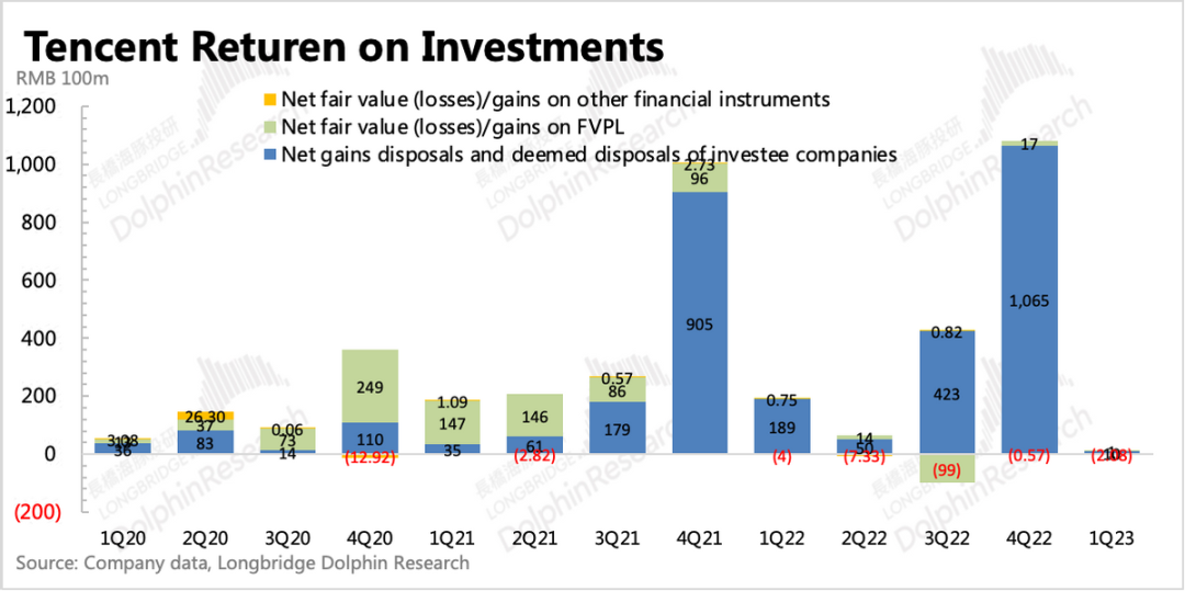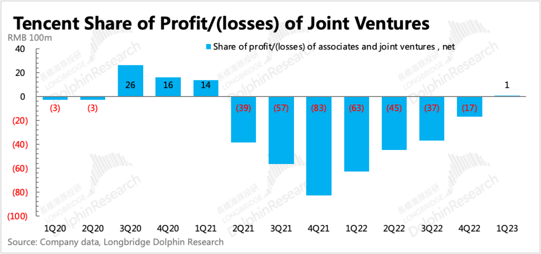 4、一次集体性降本增效,腾讯投资的兄弟公司终于不拖后腿了。一季度没有大额度的投资性资产处置情况,因此其他收益明显回落。但一个亮点是,分占联营/合营公司收益已经时隔两年后正式扭亏。